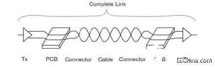 在串行数据链路分析和评测使用的高速通信环境中,需要应用程序,在实时示波器的实时波形上执行建模、测量和仿真。针对从被测器件中采集波形使用的测试测量夹具和仪器,这些应用程序被设置成允许用户加载电路模型。图1显示了这种链路的方框图实例。