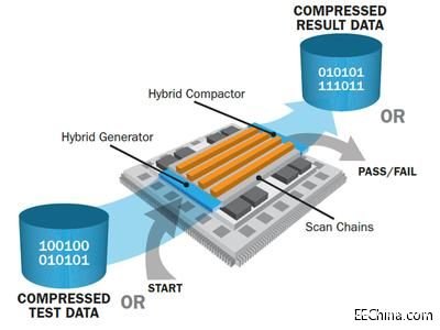 扫描测试是测试集成电路的标准方法。绝大部分集成电路生产测试是基于利用扫描逻辑的 ATPG(自动测试向量生成)。扫描 ATPG 是一项成熟的技术,特点是结果的可预测性高并且效果不错。它还能实现精确的缺陷诊断,有助于进行分析并改进。随着集成电路尺寸的增长并且制造工艺的规模越来越小,嵌入式压缩被加入了扫描 DFT(可测性设计)逻辑,从而将测试时间缩短了多个数量级。如今,嵌入式压缩已经十分常见。