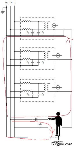 首先一点,双线触电,同时接触两个带电点总是危险的,不能被可靠的保护。 而单线触电,即工作中无意中碰到带电部分,通过我们的安全设置,是可以保证安全的。这里还有一个前提是我们和大地是相连的 (不要依赖大地的绝缘,因为不是每处每刻都相同的)。