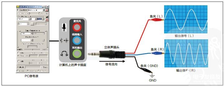 在学习模拟电子技术时,信号发生器和示波器还可以帮助我们感性地认识放大器、滤波器、振荡器等电路的特性。不过这两台设备价格比较贵,在初学阶段或许不一定非要配置。本文将介绍一种利用几个简单的元器件加一台普通计算机构成的PC信号源和PC示波器,成本不到10 元,虽然测量的精度有限,但是对于初学阶段观察使用已经足够了。