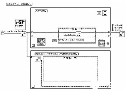 LabVIEW 具有多种程序并行处理的实现方式,这里考虑主/从模式和生产者/消费者模式。其中所不同的是生产者/消费者模式多出了一个FIFO 的机制,主要是避免在使用主/从模式时读取数据率小于写入数据时会发生的数据丢失。采用FIFO 可以作为数据的缓存,根据实际情况在两种模式之间进行选择。