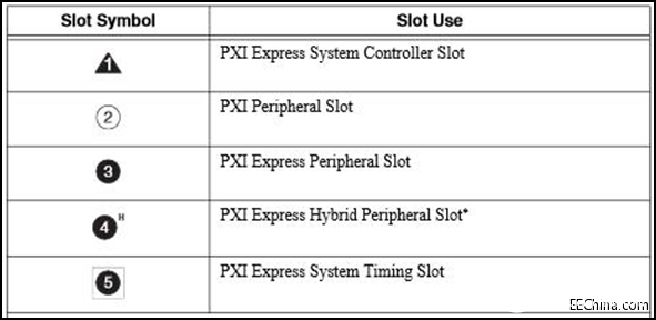 确认PXI/PXI Express机箱支持的插槽。 参考以下表格,确定您的PXI模块应使用哪个槽位。