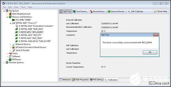 图4.使用MAX确保DMM正确安装,并使用自检功能来确定软件的正常通信。