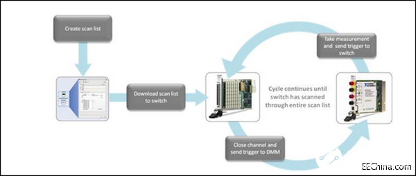 模块化数字万用表简化了与电源、示波器和开关等其他仪器的通信设置和编程体验。 定时和同步在PXI机箱内实现,因此基于PXI的数字万用表可以在PXI机箱内与其他仪器和开关进行通信,而且无需外部电缆。