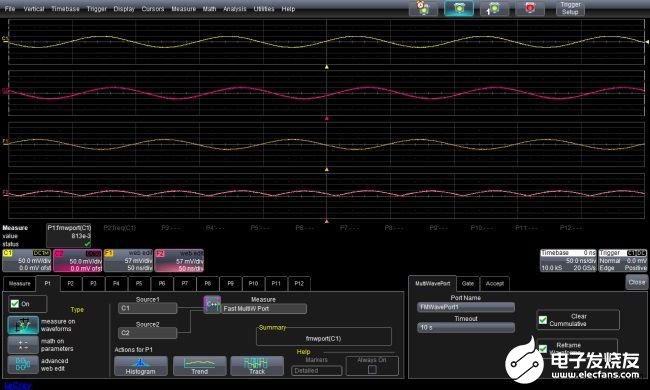 这种示波器的定制选项中有个高级功能,就是对示波器的数据提供内存映射式访问,主要用于基于用户的波形或测量运算。这个功能被称为快速多波端口(FMWP),支持将C/C++语言编写的定制处理算法插入示波器处理流。FMWP通过使用共享的内存窗口最大限度地增加了从采集系统到你的处理部分的数据吞吐量。结果可以被送回示波器,或进行独立的处理。这个功能可以支持多达4个波形输入和输出,以及最多8个参数输出。
