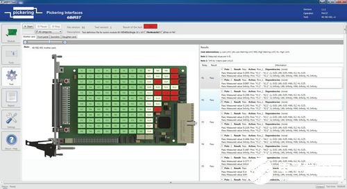 自检工具已经发生了很大的变化。Pickering在2009年发布了PXI平台的第一代包括内置继电器自检工具的矩阵模块,名字叫做BIRST(Built In Relay Self Test)。这个工具是一个非常紧凑的PXI平台的计算机附件,它允许通过软件来检测在矩阵中的每个通道的阻抗,是通过不断的测试来完成的,往往是几个毫欧级的分辨率。每一个继电器都可以检测,如果有焊接短路或者是开路的继电器都可以快速地被找到,软件的分辨能力允许连接变量的变化。每一个独立的故障继电器都可以被快速地定位。下面是BIRST的用户界面: