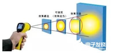 根据光学镜头的属性,点温仪离测量目标越远,光斑点会越大。同理,目标越小,为了精确测量其温度,点温仪应越靠近测量目标。因此,注意光斑大小至关重要,确保测量点离目标足够近,以覆盖整个光斑,如果能再稍近一点,形成一定的安全边界,效果会更佳。