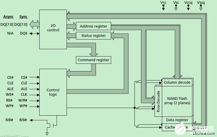 DQ0~DQ7:数据输入/输出脚,地址输入输出脚;
