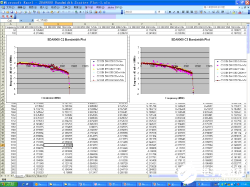 此外,在计量波特图时需要对示波器每个档位都进行计量,最终产生的波特图是所有档位的结果叠加在一起的。波特图的计量是需要半天时间完成的,并不是想象中那么轻松的工作。如图8所示是力科SDA9000的波特图。