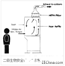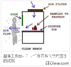 注意:超净工作台(clean bench)与生物安全柜(Biosafety Cabinet)不同。超净工作台只能保护在工作台内操作的试剂等不受污染,并不保护工作人员,而生物安全柜是负压系统,能有效保护工作人员。