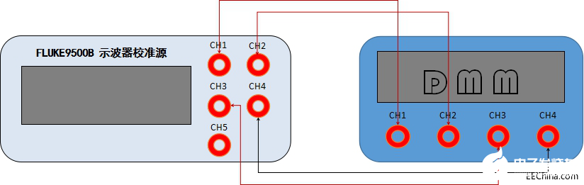 当使用9500或5800作为校准源时,如果拥有两个探头或连接线,可以实现双通道示波器的全自动计量,中途不需要再切换通道,如果拥有四个探头或连接线,可以实现四通道示波器的全自动