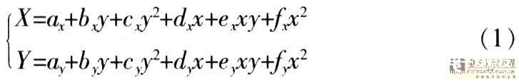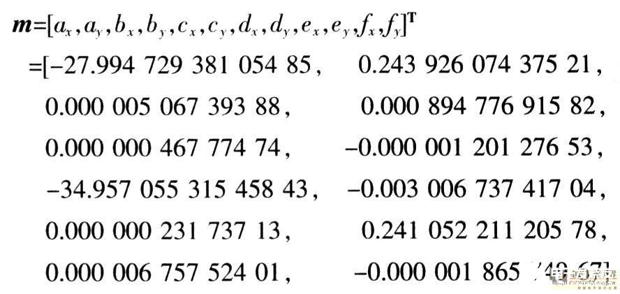式中,ax,ay,by,cx,cy,dx,dy,ex,ey,fx,fy是12个待确定的参数。