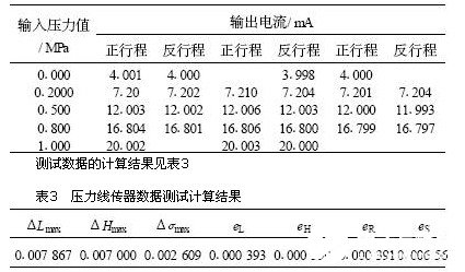 虚拟仪器已在实际传感器测试中应用。表2是对1个压力传感器(量程:1MPa),采用5个校准点,重复循环试验3次所测量计算的部分数据(置信系数α=3) 。