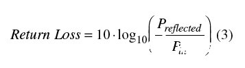 由于反射而导致的功率损耗可以用多种方法来衡量。其中一种方法是计算回波损耗(return loss),它是指反射回源端的信号功率与源发射功率的比值的对数: