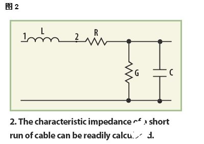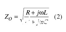 射频元件的特性阻抗并不是直流电阻。相反,对于传输线上的某个点,特性阻抗可以定义为在不存在任何反射的情况下这一点上一对电流和电压波的比。实际上,信号的频率以及传输线的单位电阻、电导、电容和电感等就决定了这一电压与电流的比值。因此,这些因素也就决定了特性阻抗的大小(Zo)。传输线(如图2所示)单位长度的特性阻抗可以表示为公式(2):