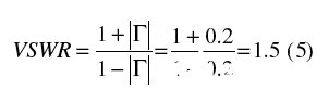 反射系数的计算结果表明20%的入射波将会反射回传输线和负载之间的不连续点。然后我们可以利用这个值来计算系统的VSWR: