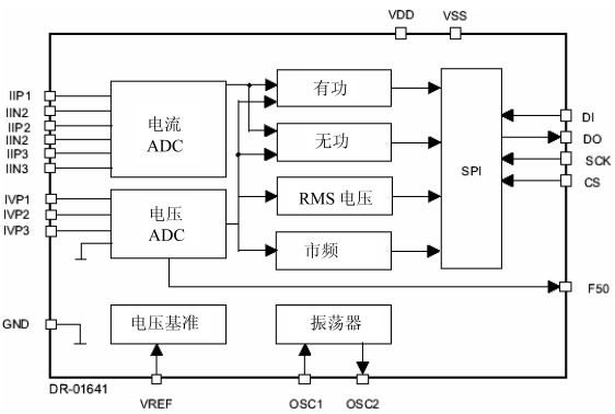 (2)ATT7026A分相/合相有功、无功功率/电能,分相/合相视在功率,功率因数,相角,线电压频率,分相/三相电压、电流有效值。
