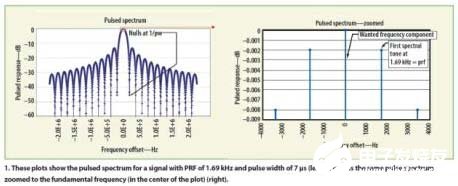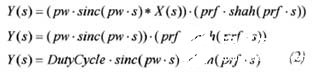 方程2给出了时域脉冲信号的傅立叶变换,它说明脉冲信号的频谱是一正弦函数的采样,采样点数(得到的信号)等于PRF。