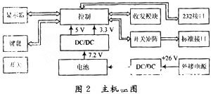 主机由主控单元、收发单元、开关矩阵、显示与键盘、电源等组成,其结构如图2所示。