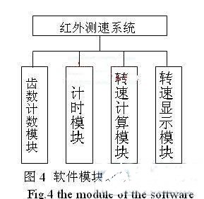 采用结构化软件设计的方法,使得设计简单,易于调试和移植,提高编程效率。采用结构化设计软件的方法将本系统软件划分为图4所示的4个模块:齿数计数模块、计时模块、转速计算模块和转速显示模块。其中最主要的是计时模块和转速计算模块。