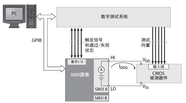 图2是面向CMOS IC,基于2600系列的IDDQ测试系统。