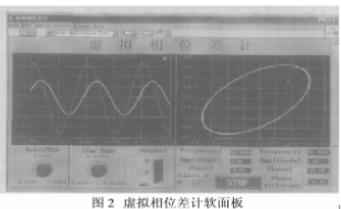 LabVIEW 提供了非常丰富的界面控件对象,可以快捷地设计出生动、直观、操作方便的用户 界面。本文设计的虚拟相位差计软面板如图2 所示。