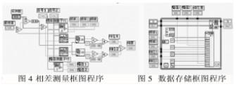 虚拟相位差计的框图程序如图 3 所示,它采用的是图形化编程语言,非常直观。该框图 包含了波形采集、波形显示和调整、波形测量、数据存储四部分。