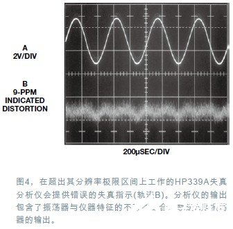 验证振荡器的失真需要复杂的测量技术。如果试图用传统的失真分析仪去测量,就会遇到一些限制,哪怕采用了高端机型。示波器可以用于显示分析仪输出端的残留失真(图4)。对于任何与振荡器有关的信号活动,放大器的本底背景都显示出微弱的噪声与不确定性。