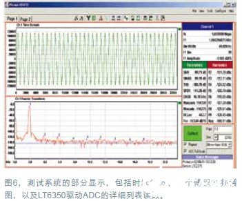 在测试ADC时,将振荡器输出连接到ADC的输入放大器上。测量的是ADC与ADC输入放大器联合产生的失真。然后用一台计算机检查ADC的输出,它量化表示出了频谱误差的分量(图6)。