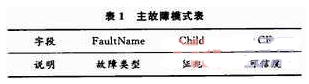 主故障模式表用来存放测试设备中主要的故障类型。表的结构为Module(FaultName,Child),其中,FaultName为故障类型的名称,Chi-ld为此故障类型对应的征兆表的名称。如表1所示。