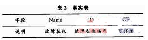 事实表包括征兆表和结论表,两表的结构相同。表的结构为Fact(Name,ID),其中,Name为故障征兆(结论)的名称,ID为故障征兆(结论)的编码。如表2所示。