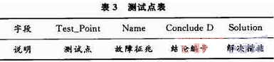 测试点表用来存放测试通道中的测试点。表的结构为Test_Point(PointName,PCBName,X,Y,ID,ToneName,Solution),其中,Point Name为测试点的名称,PCBName为测试通道的PCB图文件,X为测试点的横坐标,Y为测试点的纵坐标,ID为测试点的编码,ToneName为测试通道的名称,Solution为对故障采取的解决措施。如表3所示。