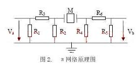 网络的阻抗与测试仪表的阻抗相匹配,并衰减来自测试仪器的反射信号。M为待测石英晶体。Va是输入激励信号,Vb是π网络输出信号,它们都是矢量电压信号。当石英晶体处于谐振状态时,其表现为纯电阻特性,此时Va与Vb之间相位差为零,Va的频率即为石英晶体的串联谐振频率。所以,通过改变Va的频率并检测Va与Vb之间相位差可以找到石英晶体的谐振频率。对于π网络中石英晶体的静电容如何测量,IEC并未推荐标准方法。π网络由对称的双π型电阻回路组成,R1、R2和R3构成输入衰减器,R4、R5和R6构成输出衰减器,它们的作用是使