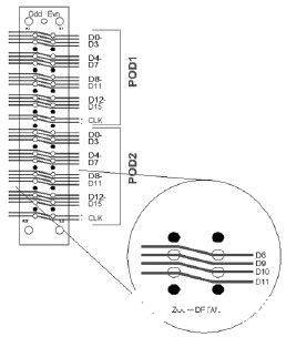 解决这一问题需要增加接地线数。在理想情况下一个信号有一个接地。所需要的接地数与频率成正比。我们建议一个接地不要用于两个以上信号。如果您在用逻辑分析仪捕获数据时发现有问题, 首先要检查接地线数。