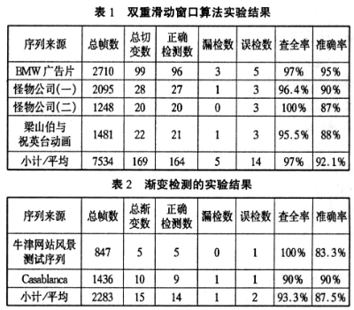 视频镜头检测中,常会出现错误的检测或漏检,这些都是不允许的。常用查全率(也称复现率)和准确度以用来表示检索系统的性能。