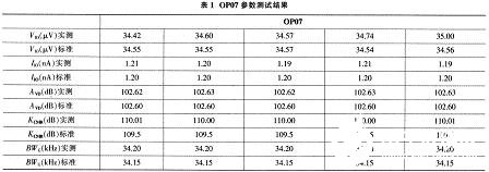 利用该系统测量OP07、μA741、LF256等,运放器件的参数可在FPGA显示器上显示,后果表明,该测试仪测量精度高,符合设计要求,其中表1是测量OP07结果。