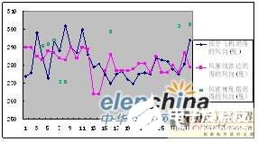 从图1可以看出,两者的风速差分布相对比较均匀,风能梯度塔测得的风速值比风廓线雷达测得的风速值要偏大一些。经计算,风能梯度塔的平均风速为8.2m/s,而风廓线雷达的平均风速为7m/s,两者的风速平均差为0.37m/s,标准差为1m/s(见表一)。