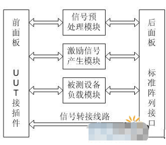 信号转换与处理部分包括激励信号产生模块、信号预处理电路模块、被测设备负载电路、信号转接线路等。激励信号产生模块产生部分特殊测试激励信号,信号预处理模块对被测信号进行预处理,以适应仪器测量,被测设备负载电路用于为被测设备提供必要的负载,以构成一个完整的测试环路。