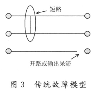 传统的互连故障模型包括2种故障:一种是单个网络输出呆滞。另一种是几个网络之间发生短路。如图3所示。