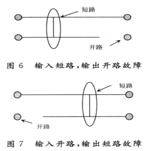 管脚对应着网络的输入或输出点,把管脚故障作为参考点来定义网络互连故障,可以得出:网络短路就是网络的输入点之间或输出点之间发生短路,而开路就是指网络的输入点或输出点跟网络导线之间断开。