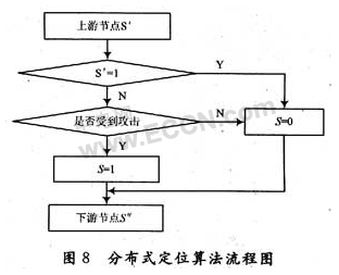 假设网络结点报警状态参量为S,正常状态时令S=0,受到攻击时令S=1,上游结点报警状态参量为S’,下游节点报警参量为S“,分布式定位算法的主要流程如图8所示。