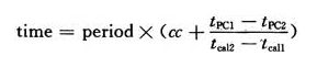 其测量原理如下:输入START信号芯片内部迅速测量出这个信号与下一个校准时钟上升沿的时差tPC1,之后计数器开始工作,得到此前置配器的工作周期数period。这时重新激活芯片内部测量单元,测量出输入的STOP信号的第一个脉冲上升沿与下一个校准时钟上升沿的时差tpc2,tpc3是STOP信号的第二个脉冲上升沿与校准时钟上升沿的时差。tcal1十一个校准时钟周期,tcal2是两个校准时钟周期。根据图6可以得出START信号与STOP信号第一个脉冲的时间间隔为: