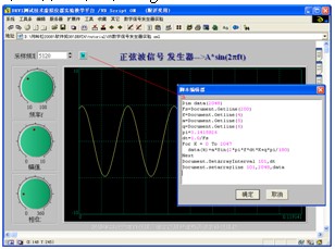 其中A为正弦波信号幅值、f为频率、为初相位。这个公式对学生来说丝毫不陌生,但通过学生自己动手编程设计成一个正弦波信号发生器后,他们对知识的理解深度就会完全不同。图5是用Signal Basic脚本语言设计的正弦波信号发生器的例子,只需简单的几行代码就可以完成。图中Document.xxx部分函数就是我们在VBScript中扩展的专用函数,Sin函数、For语句等常规语言元素是VBScript的自有功能。