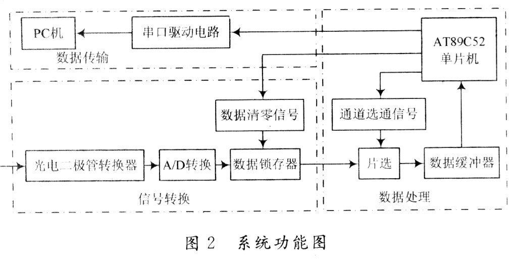 测量系统采用ATMEL公司的AT89C52作为控制器,由信号转换,信息处理,数据传送三部分组成。