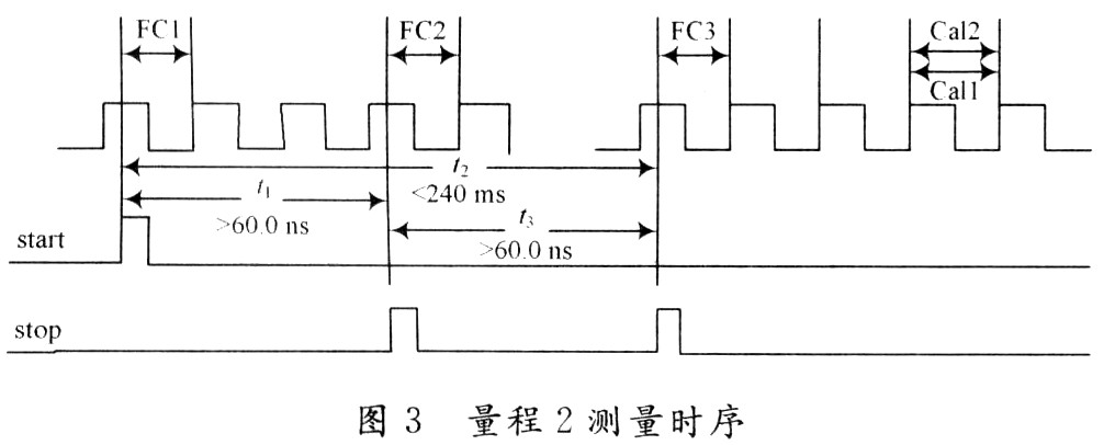 在该系统中,主要采用TDC—GPl的量程2进行设计。其测量时序如图3所示。