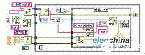 另外,为了精确的控制时间,系统还采用了定时结构和通知技术,通过通知器操作函数可以实现一段程序框图在收到来自于定时结构中每秒发出的通知消息前保持等待状态,从而实现了程序中每秒显示一次数据和每分钟保存一次数据的功能。