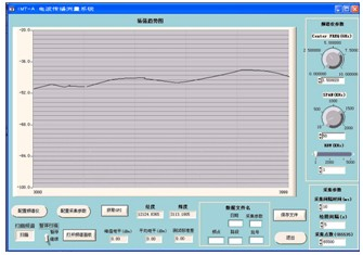 为达到对测量设备的程控,在主控计算机上设计实现虚拟面板(如图5所示),以对频谱仪参数进行设置、跟踪和显示,并对数据进行保存,在具备仪器设备面板所有功能基础上,增加分析和数据保存功能,为后续工作提供数据资料。虚拟频谱仪利用Labwindows/CVI 提供的系统函数读取频谱仪的测量数据,为满足数据存储要求,读取速度在100ms 左右。为能及时显示所读到的测量数据,需要用到PlotY 和DeleteGraphPlot 函数,用于曲线的显示。ArrayToFile 函数将读到的数据存储到指定的数据文件中,为后续的数据后处理及建模奠定了基础。