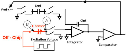 电容/数字转换器容许利用容性传感器的优点,包括:简单的形状适应、低的功耗和有利的制造成本以及便于控制和读出的优点。