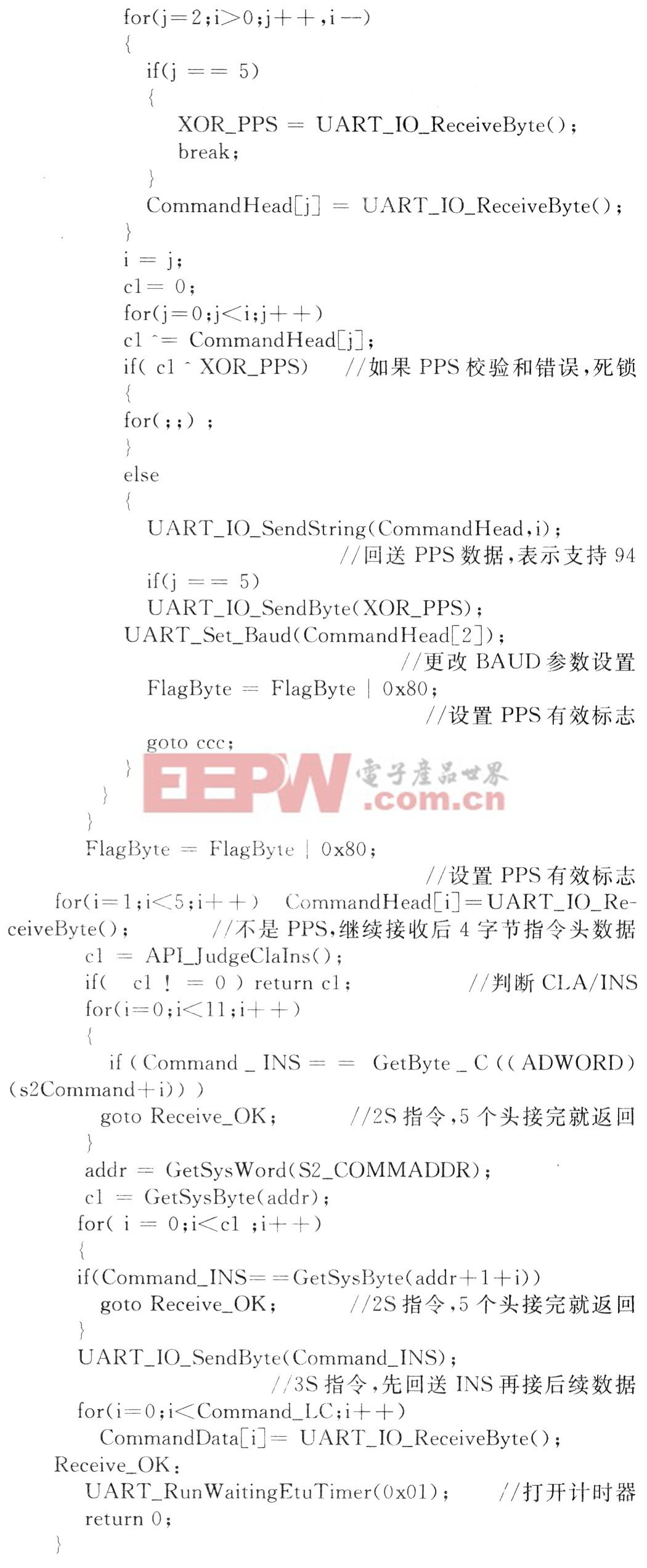 以下是卡片接收指令相关的源代码: