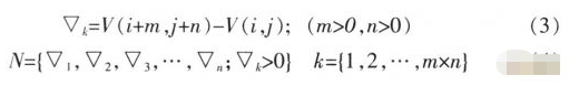 式中,V(i,j)为当前像素灰度,V(i+m,j+n)为以当前像素为中心设定窗口内的邻域像素灰度值。当满足▽k》0时的非负个数N作为其中的裂纹像素的主要特征判断标准。